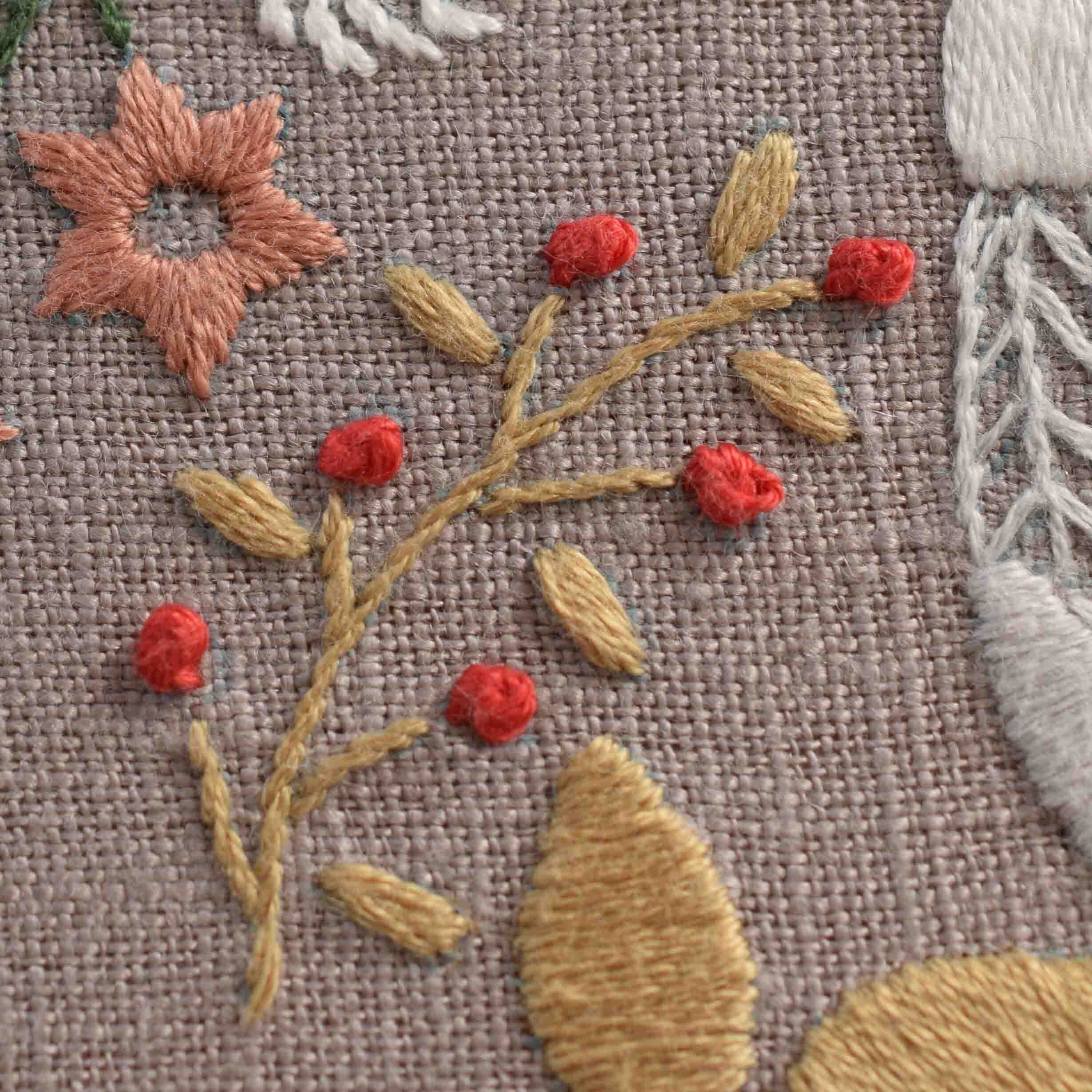※解説メモに誤りがあり、ダーラナホースのフレンチナッツステッチ(3)がDMC:347で記載しておりますが、使用している刺繍糸はDMC:3859になります。