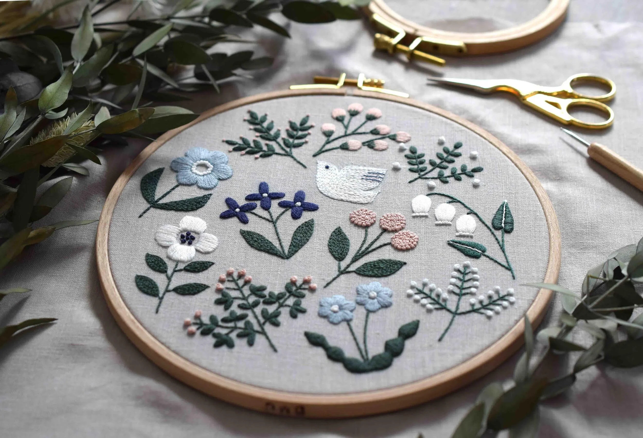 草花ワンポイント刺繍